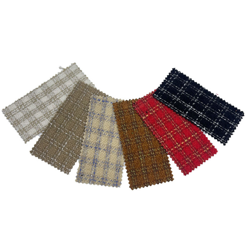 Kain ini, yang ditetapkan sebagai pasal 3764, adalah tekstil tenunan wol yang terdiri dari 100% serat lainnya. Dengan massa per satuan luas 560 g/m, ia menghadirkan konstruksi berbobot sedang hingga berat. Permukaannya memadukan pola kotak-kotak dengan struktur chenille yang telah melalui proses penyikatan. Teknik finishing ini memunculkan serat dari benang chenille sehingga menciptakan tekstur permukaan yang lembut. Desain kotak-kotak dibentuk melalui interaksi benang berwarna dalam proses menenun, menjaga presisi geometris. Teknik manufaktur ini menghasilkan kain dengan definisi pola visual dan kualitas sentuhan yang khas. Bahan tenun tweed ini dapat digunakan untuk pakaian wanita yang memerlukan daya tarik permukaan dan integritas struktural.
