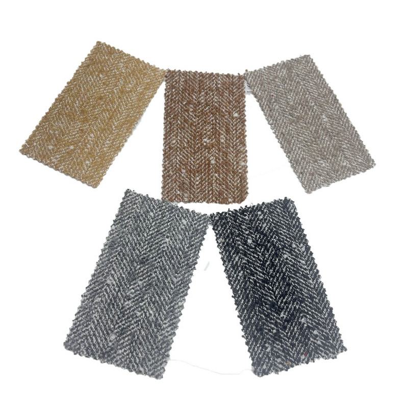 Kain ini, yang ditetapkan sebagai pasal 3906, merupakan tekstil wol yang terdiri dari 30% wol dan 70% serat lainnya. Dengan massa per satuan luas 620 g/m, ia menghadirkan konstruksi kelas berat. Permukaan abu-abu dan putih memadukan pola herringbone dengan tekstur gelembung, menciptakan efek gabungan melalui teknik tenun khusus. Metode ini menghasilkan ciri khas motif berbentuk V dan area timbul yang terlokalisasi di seluruh kain. Komposisi campuran wol berkontribusi terhadap sifat isolasi termal dan ketahanan struktural kain. Karakteristik teknis ini menghasilkan bahan dengan tekstur tiga dimensi yang ditingkatkan dan kepadatan yang besar, sehingga dapat diterapkan untuk pakaian musim dingin yang membutuhkan kehangatan dan daya tarik permukaan yang lebih tinggi.