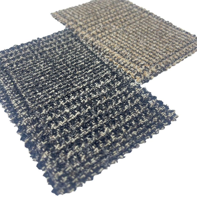 Kain ini, yang ditetapkan sebagai pasal 4336, merupakan tekstil wol yang terdiri dari 5% wol dan 95% serat lainnya. Dengan massa per satuan luas 550 g/m, ia menghadirkan konstruksi kelas berat. Permukaan berwarna hitam dan coklat memadukan pola kotak-kotak dengan motif houndstooth yang dipadukan dengan benang metalik pada proses penenunan. Teknik ini menciptakan desain komposit dimana pola geometris ditonjolkan oleh elemen reflektif cahaya. Dimasukkannya benang metalik memberikan efek visual yang kontras terhadap dasar tenunan. Spesifikasi teknis menghasilkan material dengan kompleksitas visual dan kepadatan struktural berlapis-lapis, sehingga dapat diterapkan untuk proyek yang memerlukan artikulasi pola dan variasi permukaan.