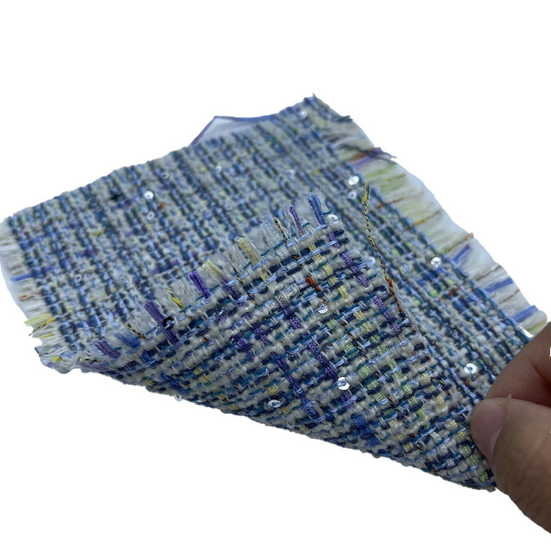 Kain ini, yang diberi label artikel ZZH24018, adalah tekstil wol yang terdiri dari 20% wol dan 80% poliester. Dengan massa per satuan luas 560g/m, material tersebut menghadirkan konstruksi berbobot sedang. Kain ini menggunakan payet metalik yang dipasang di dalam struktur wol, menciptakan pantulan cahaya terputus-putus di permukaan. Campuran wol dan poliester memberikan keseimbangan antara karakteristik serat alami dan konsistensi struktural. Kombinasi ini menghasilkan material dengan variasi tekstur permukaan dan stabilitas dimensi. Spesifikasi ini membuat kain tweed ini dapat digunakan untuk jas wanita yang mengutamakan kepentingan visual dan performa praktis.
